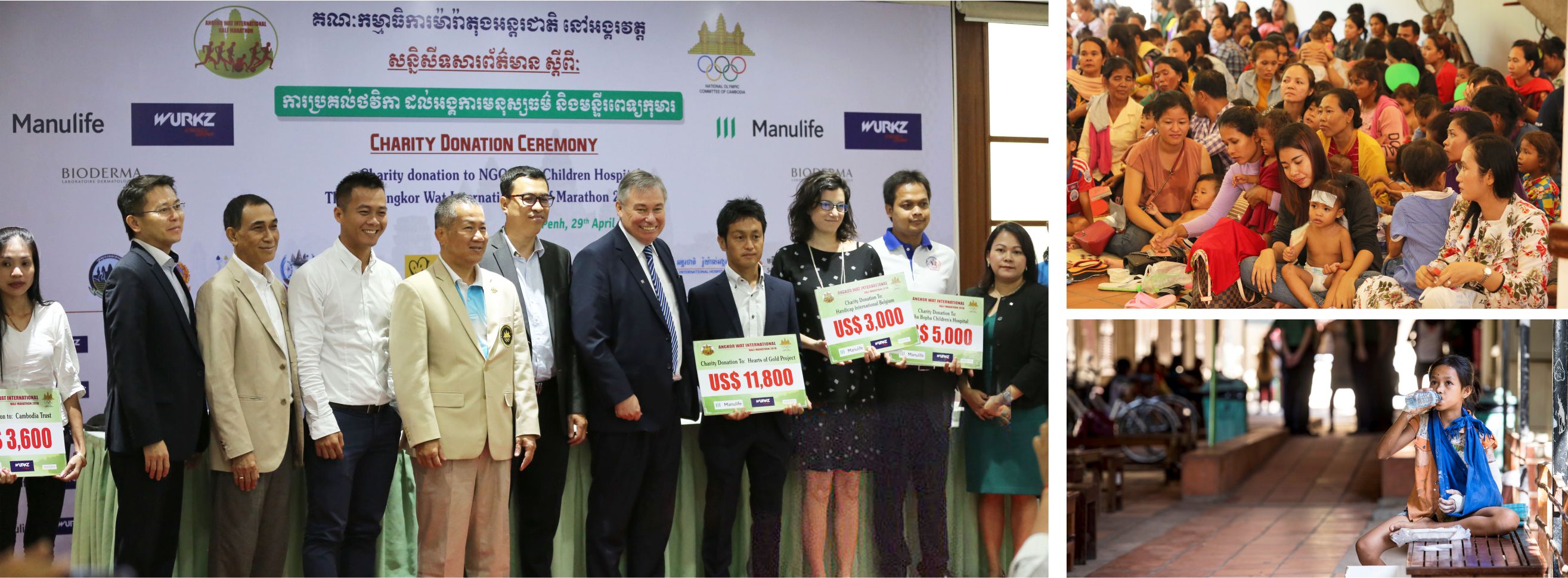 As the main purpose of our events is charity events, we are trying the best contribution to the cause of building a better future for young generation of Cambodia through physical education of sport events and financial supports to poor children in the hospitals, disable people of landmines. Within the period of more than 23 years we have been working with some charitable NGOs to support their projects and also support to Angkor children hospital, Cambodian Red Cross, Kantha Bopha Children’s Hospital, Cambodian Trust, Handicap International Belgium, Cambodia disable athletic federation, Kruasa Thmey, Mekong du Enfants… Therefore one part of your participation fee will certainly go to the charity account and especially any of your big or small donation will bring an important benefit to the people in need.